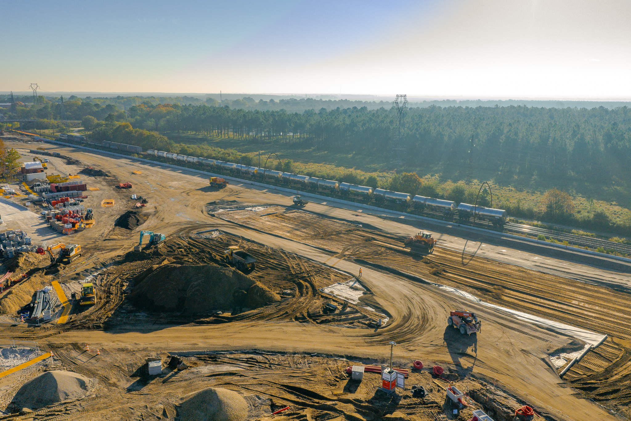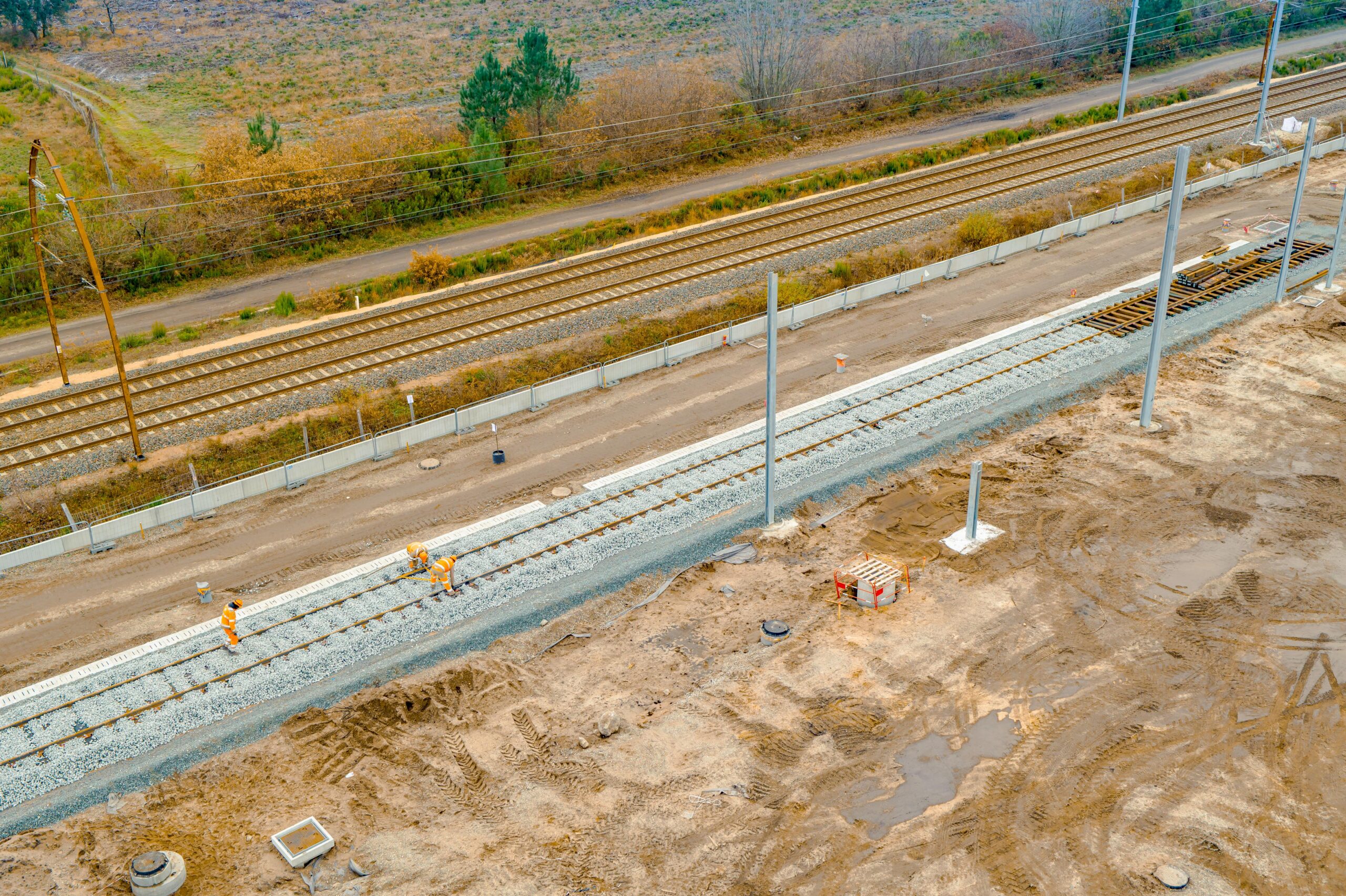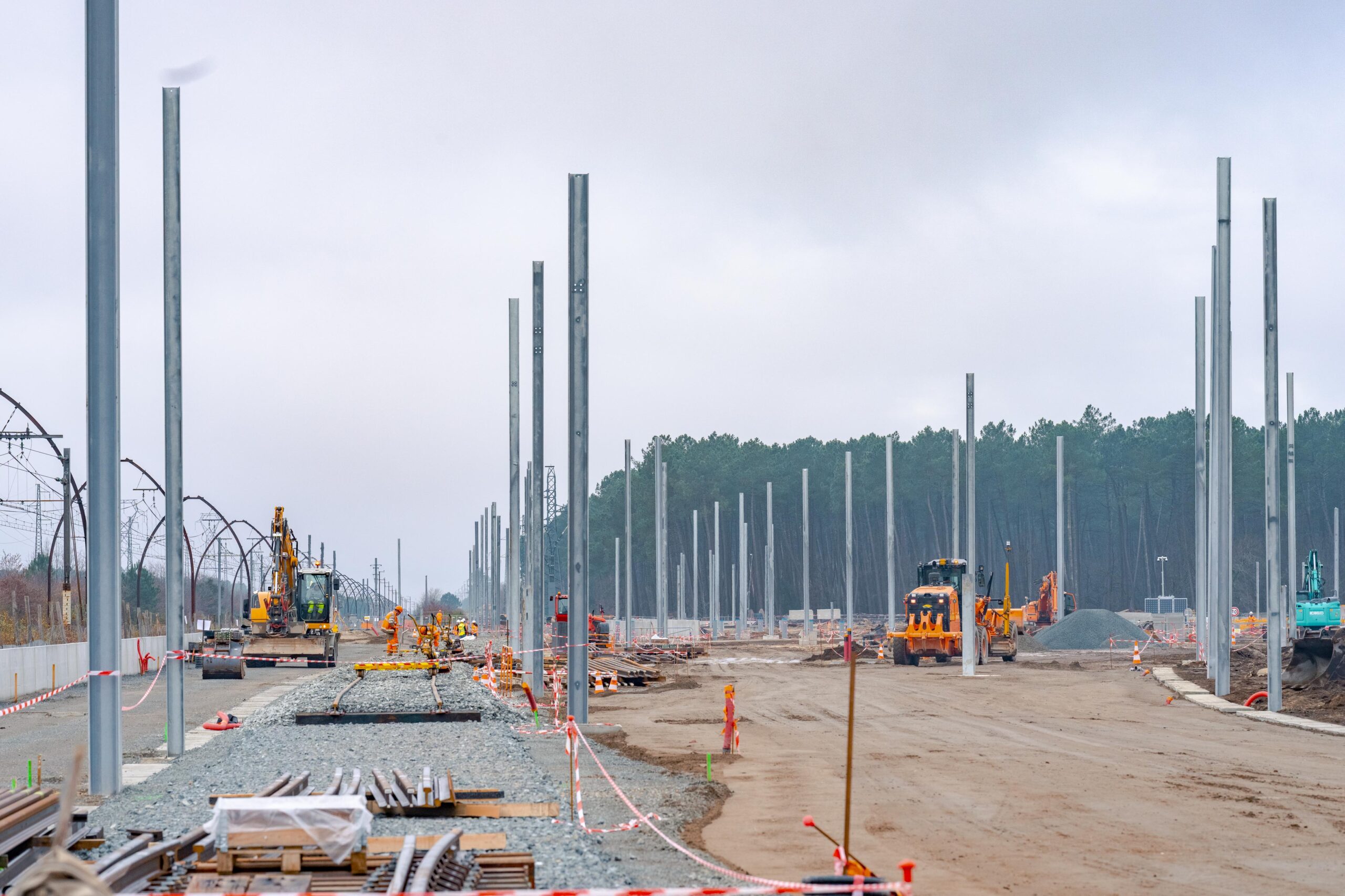 De janvier à mai 2026 : poursuite des travaux ferroviaires avec la pose de voies et d’aiguillages sur le site.
